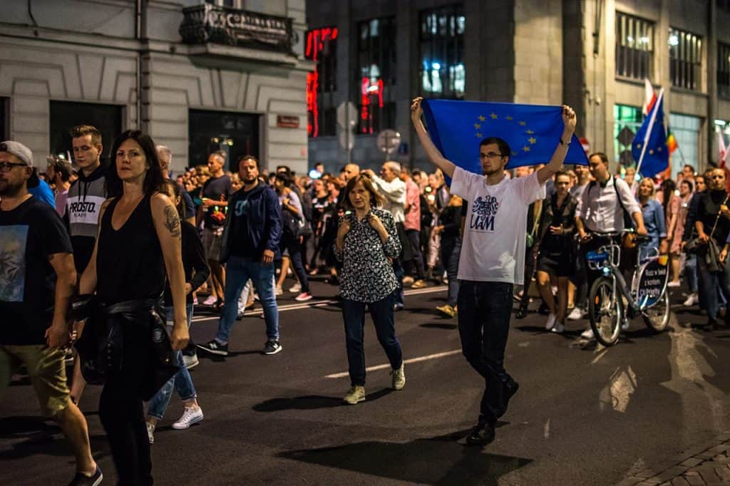 A protest in Poland on July 21, 2017 over proposed judicial reforms. Source: Staboslaw/flickr – CC BY 2.0